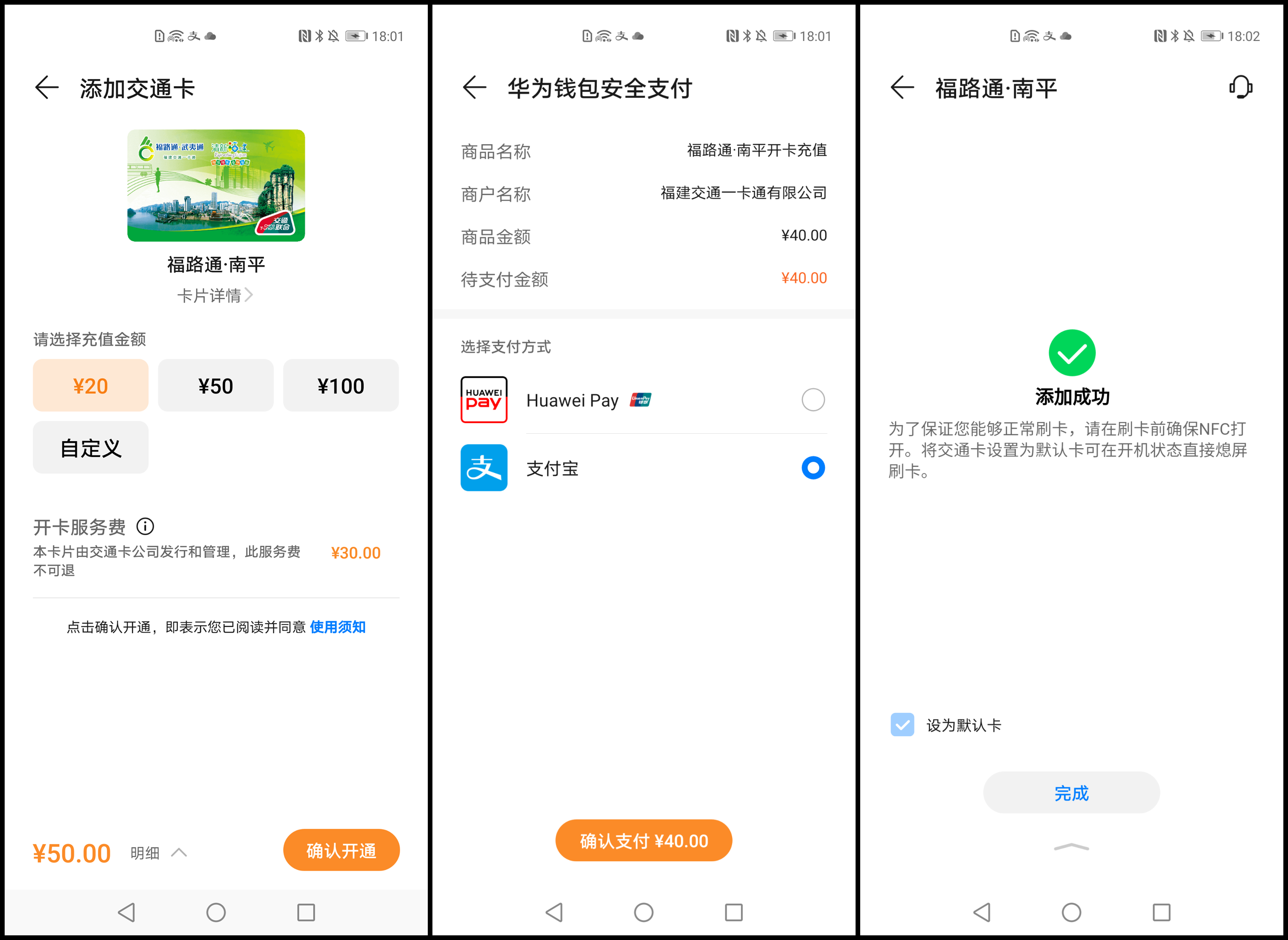 近日,我司聯(lián)合深圳可為信息技術(shù)有限公司,推動“福路通”交通卡正式入駐Huawei Pay(華為錢包):具備NFC功能的華為/榮耀手機(jī)用戶現(xiàn)在就可以在華為錢包中開通南平、莆田、漳州地區(qū)的“虛擬交通卡”,以“手機(jī)感應(yīng)”的超便捷方式乘坐公交地鐵,并享受當(dāng)?shù)氐某塑噧?yōu)惠!
